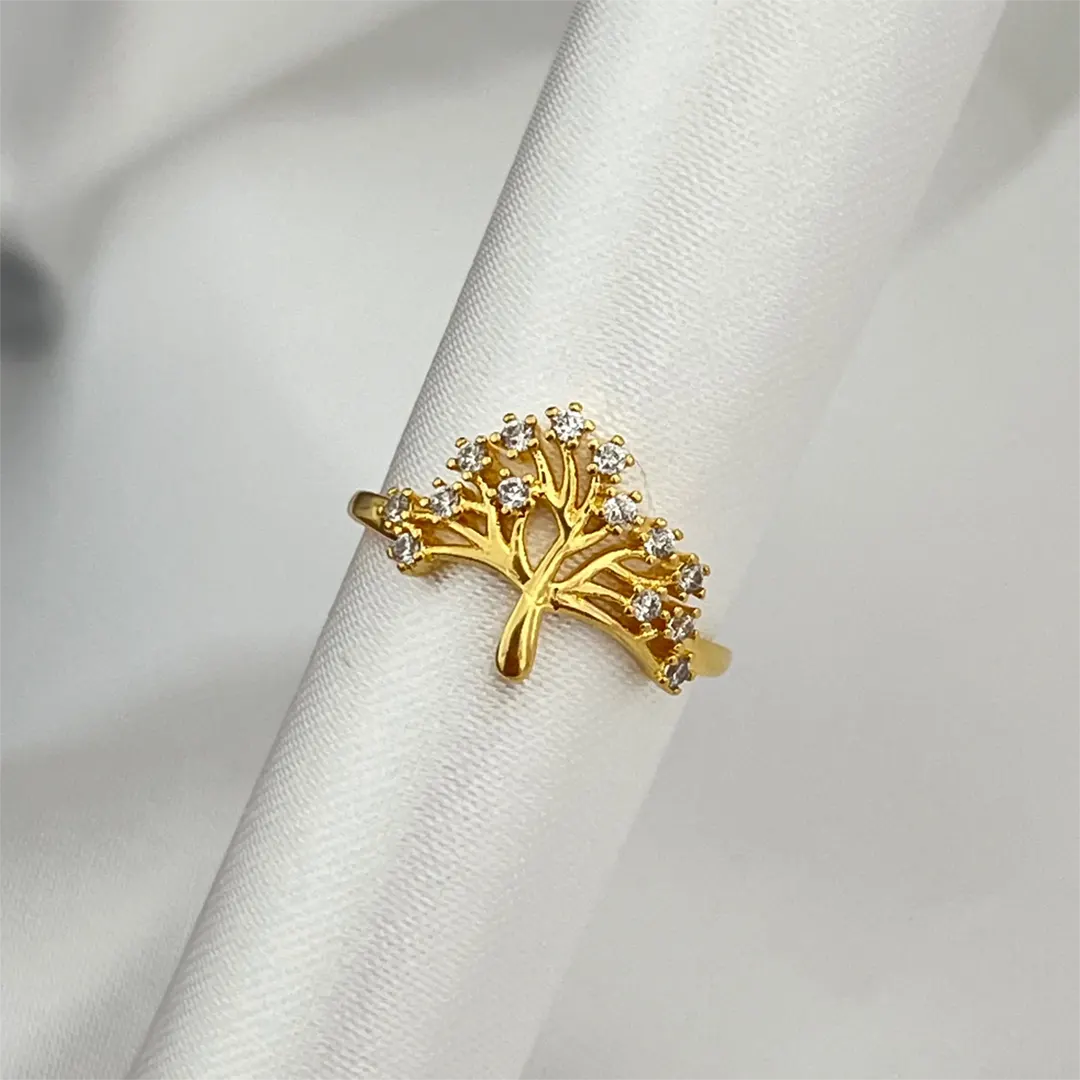 Anillo árbol de la vida bañado en oro 18K, medidas: 16, 18, 20, 22, 24 y 26.