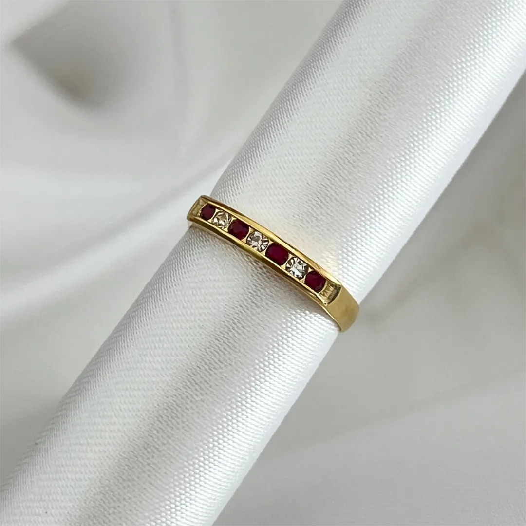 Anillo combinado rojo y blanco – bañado en oro 18K
