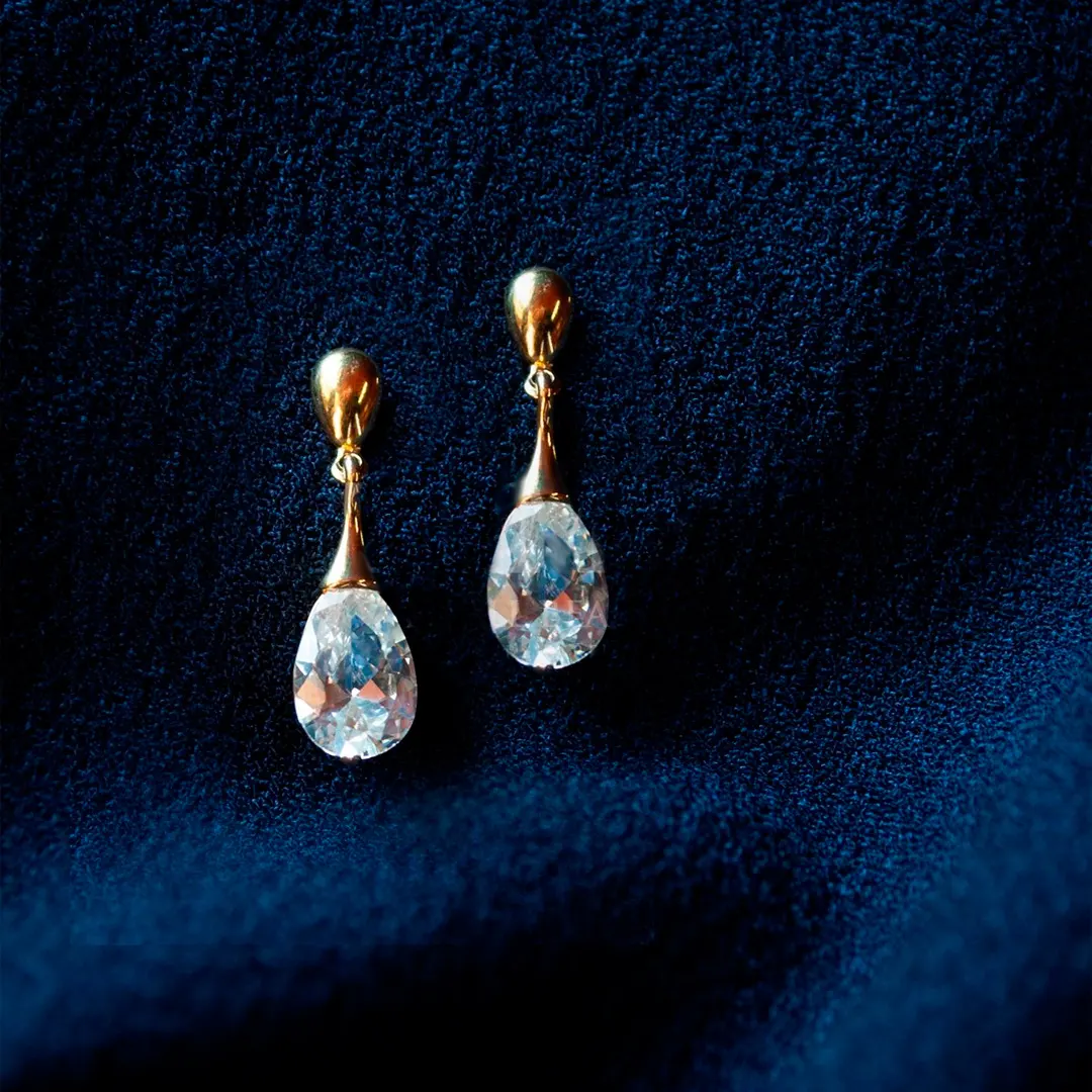 Aro gota zirconia blanca – bañado en oro 18 kilates de 3 cm de largo