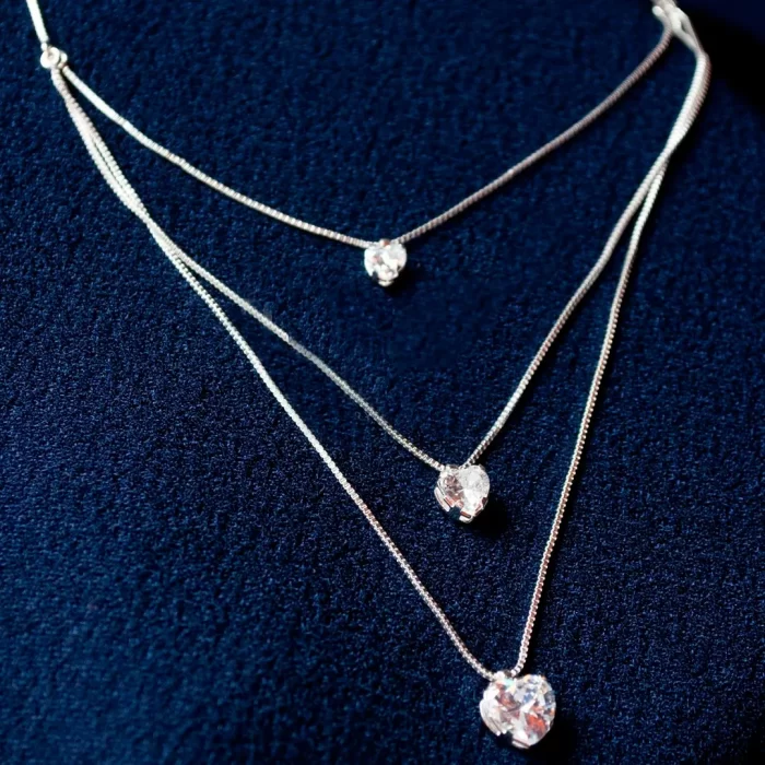 Gargantilla triple corazón zirconia blanca – bañada en plata 950