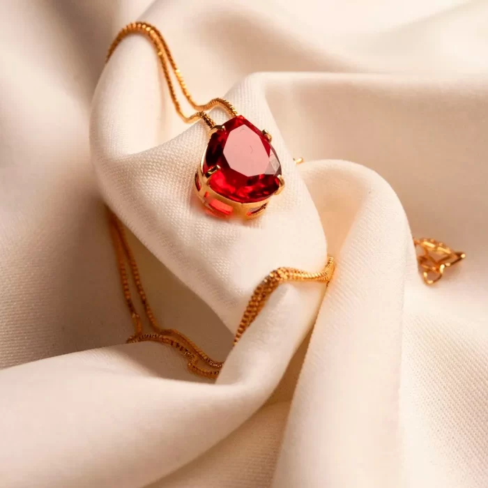 Gargantilla zirconia roja – bañado en oro 18 kilates de 45 cm