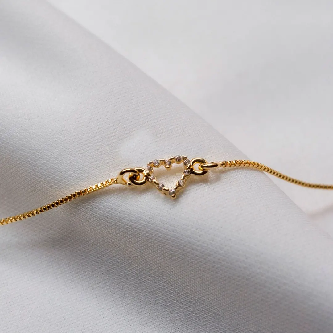 Pulsera corazón con strass – bañada en oro 18 kilates – largo de 18 cm