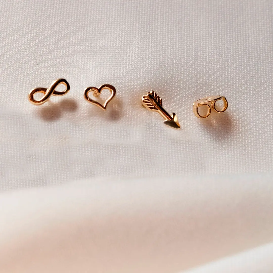 Trío flecha, infinito y corazón – bañado en oro 18 kilates